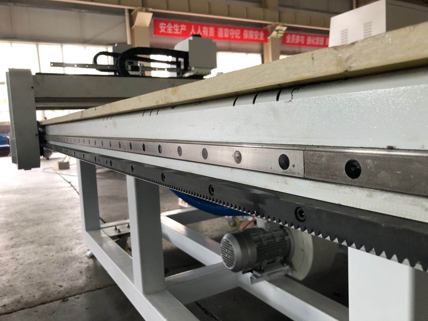 設備簡介:產(chǎn)品功能:適用于玻璃的切割;玻璃膠膜的刻繪。注:可定制多頭切割。設備占地面積:9平方米操作人員: 切割:1人(懂電腦基本操作)掰片:1人產(chǎn)品特點:l 總線絕對值電機、進口高精度齒條等頂級元氣件配置有效地保障玻璃切割精度及穩(wěn)定性,使用壽命更長,能滿足各種形狀玻璃的切割;l 開機不用回原點,斷電會自動記錄機械坐標,通電后無需找回機械原點,提高工作效率;l 無正、負向限位開關,減少故障點和更換