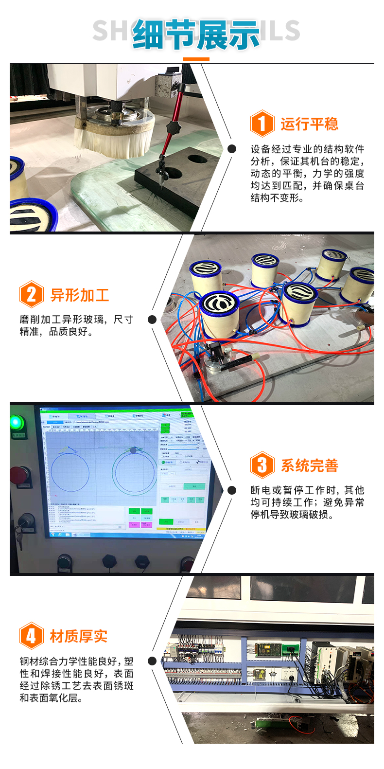 操作系統簡介:l 、運行速度快,運行平穩,控制精度高,控制器結構模塊化; 2 、流水線切割模式、光電定位切割模式、直接切割模式通過選項自由設置。 3 、加工路徑實時跟蹤顯示,警自動記錄。適時記錄運動坐標,軸狀態, ! / 0 狀態,故障診斷與報 4 、下刀距離可設。編輯加工文件時可以不用修邊,提高玻璃利用率。 5 、 OX 「類文件的排序功能,有近點、切入點,或按圖形顏色順時針、逆時針排序等選項。自由實現單相切割與雙向切割切換。 6 、圖庫套料編程,從圖庫中選取異形,設置相關參數、加工數量,自動套料,生成加工軌跡。了、補償功能:刀具偏心補償、間隙補償、螺距補償。 8 、光電定位功能(確定玻璃的實際位置)切割。根據實際位置和偏轉角度,自動調整 9 、各種保護:包括軟硬限位、刀壓限制、外部急停控制等等。、速度增加/降低按鈕可適時優化機器切割速度。、人機界面簡潔大方,參數調整簡單,需要操作人員修改的參數較少,簡單直觀,對操作人員要求低。、主機采用一體機模式,穩定性高